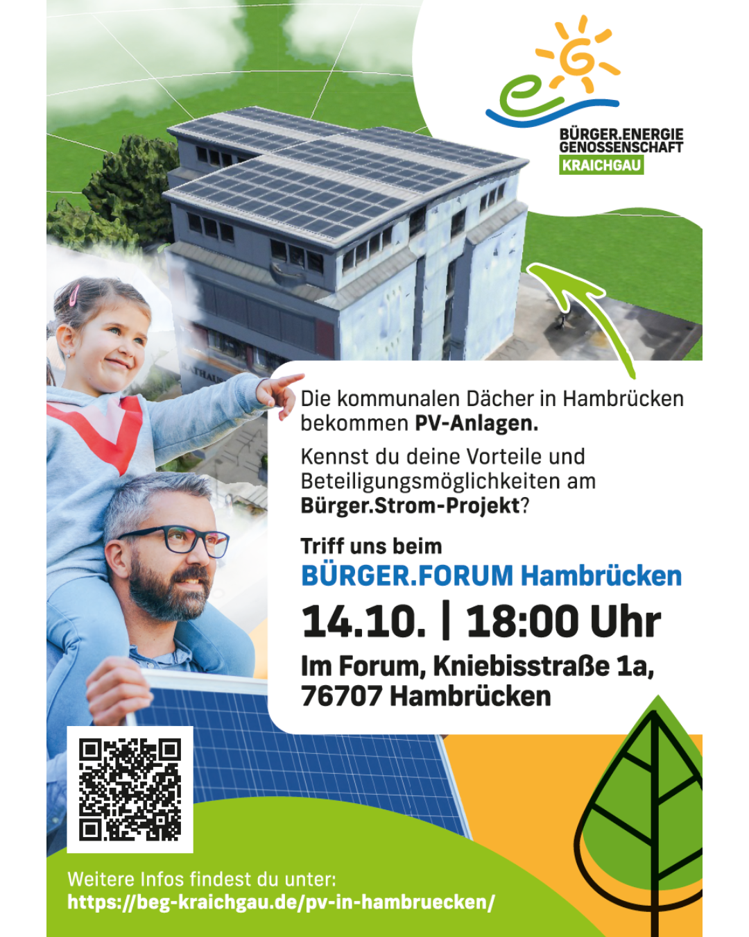 Die BEG Kraichgau und die Gemeinde Hambrücken laden herzlich zum Bürgerinformationsabend am 14. Oktober 2025 um 18:00 Uhr ins Forum, Kniebisstraße 1a, 76707 Hambrücken